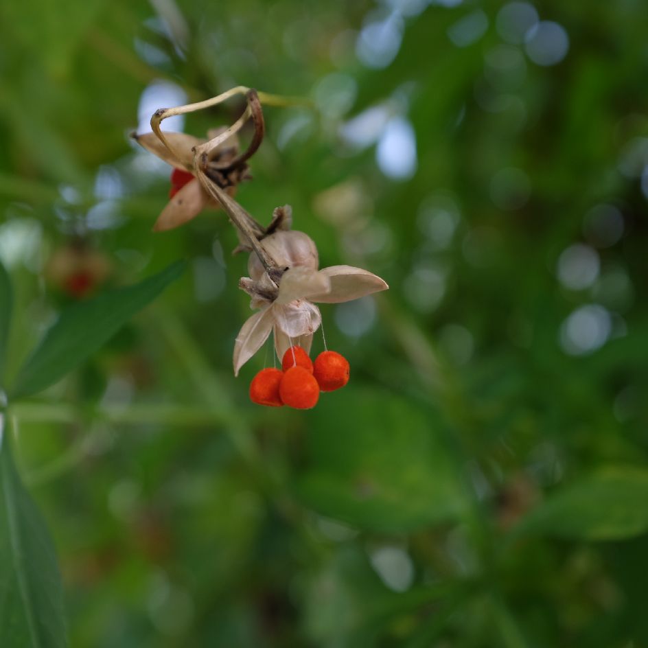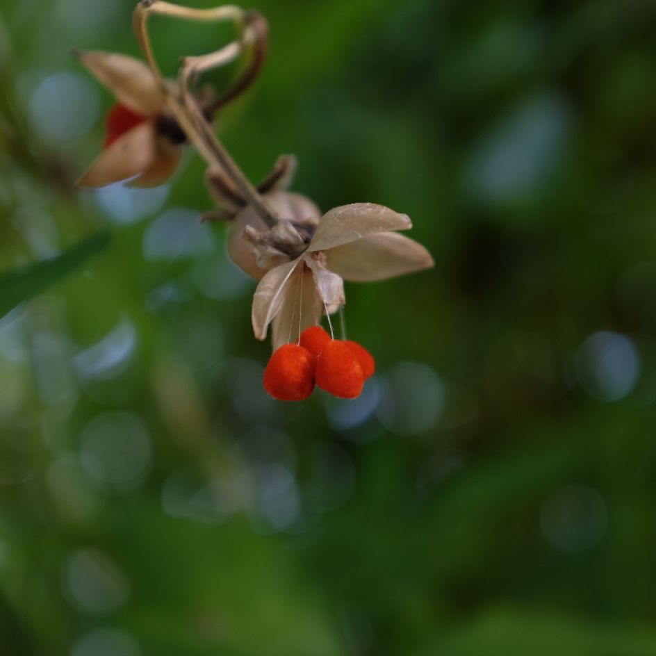 Aspect : Fleurs mauve de 40 mm de long. Graines orange suspendues a un arille.