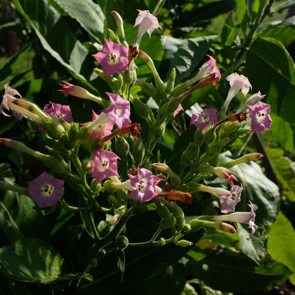 Nom latin : Nicotiana tabacum L.Ce tabac Blond de Virginie est très décorative avec ses belles fleurs de couleur rose. Les fleurs forment des pannicules lâches. La floraison s’étale de juillet jusqu’au mois de septembre. Cette plante est très intéressante dans les massifs grâce à sa grande taille. Les feuilles décoratives sont de grandes tailles.
