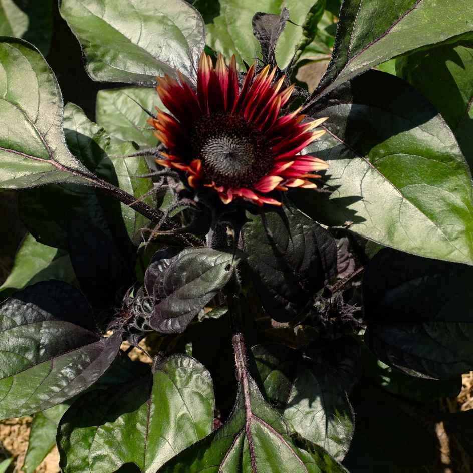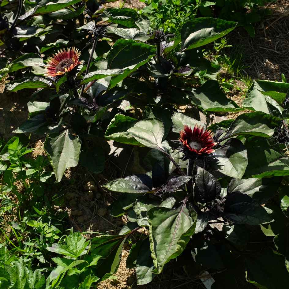 dans un massif, ce tournesol se marie très bien avec le tournesol Teddy Bear.