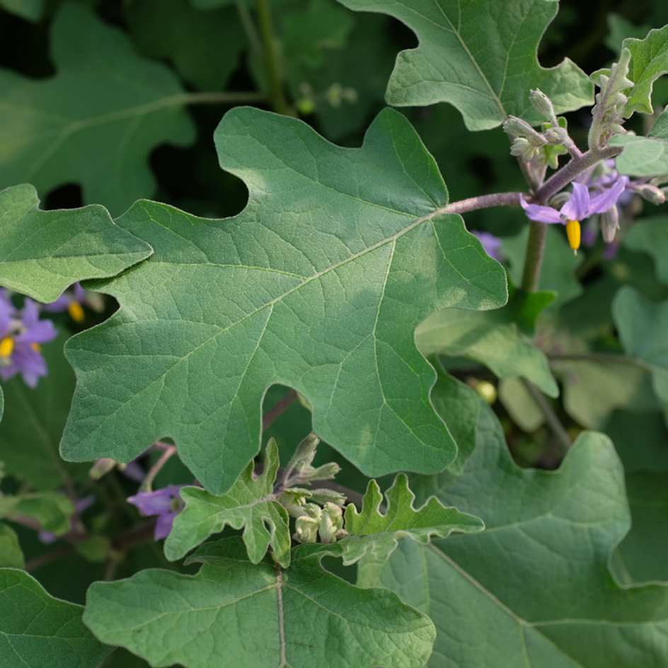 Nom latin : Solanum torvum Sw.L’aubergine Noon Ta Klong Pea offre de nombreuses grappes de la taille d’un gros pois. Lorsqu’ils sont vert vif et immatures, les fruits servent à agrémenter les currys et les sauces en Thailande.