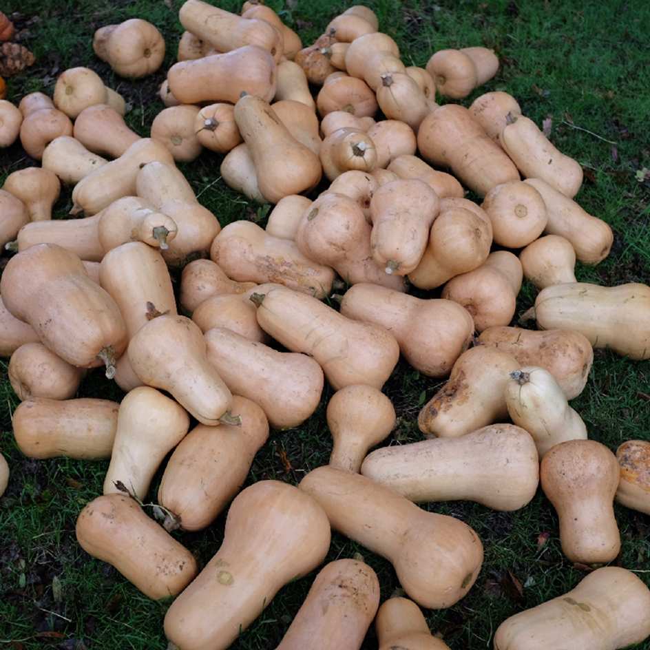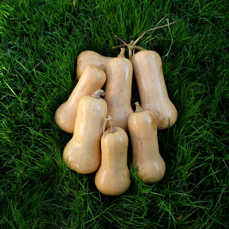 Nom latin : Cucurbita moschata Duch. 'Butternut'La courge butternut, reconnaissable à sa forme allongée et sa peau beige, est une variété ancienne de courge musquée très appréciée pour sa chair tendre, fine et sucrée. Son fruit, en forme de poire, est vert foncé puis devient beige à maturité et peut atteindre jusqu’à 70 centimètres.