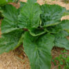 Les feuilles naissent de courts rhizomes (tiges souterraines) et sont toxiques, contrairement au pétiole qui est la partie de la plante consommée. Celui-ci, de couleur vert rougeâtre, arrondi et canaliculaire, mesure jusqu’à 50 cm de longueur pour 3 à 7 cm de largeur et d’épaisseur.