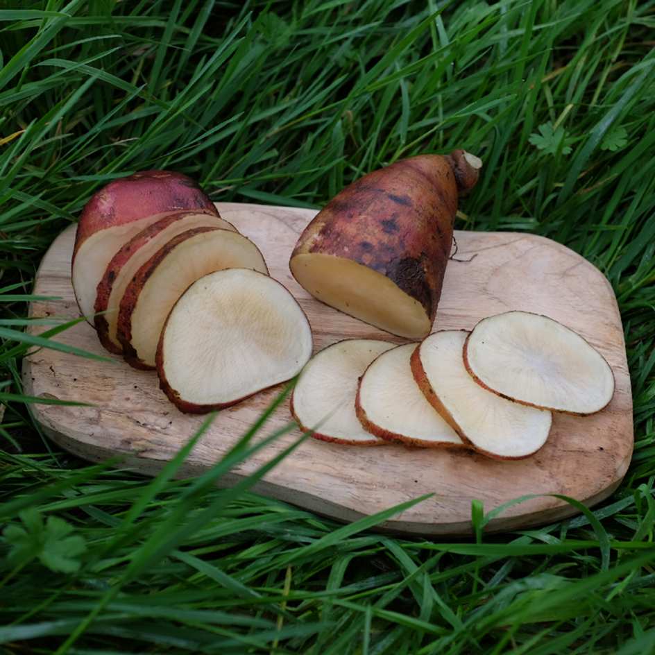 La Poire de Terre est un tubercule vivace, de la même famille que le topinambour ou le tournesol. La chair du tubercule est juteuse, croquante est assez sucrée. Elle peut se consommer crue ou cuite.